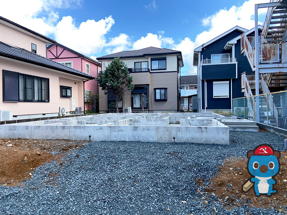 傾斜地や地盤の軟弱な場所で不同沈下※が起きやすいと言われているため、地盤調査会社が、調査したデータをもとに解析をし、不同沈下の危険性が認められた場合、基礎の補強工事や地盤改良工事を施します。(地盤解析相談判定書)