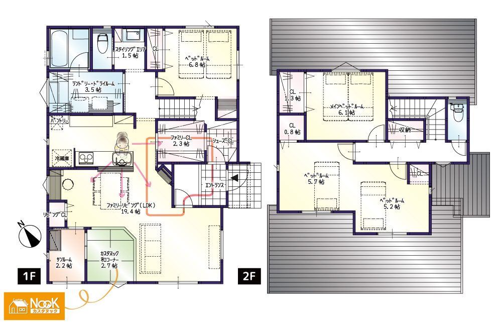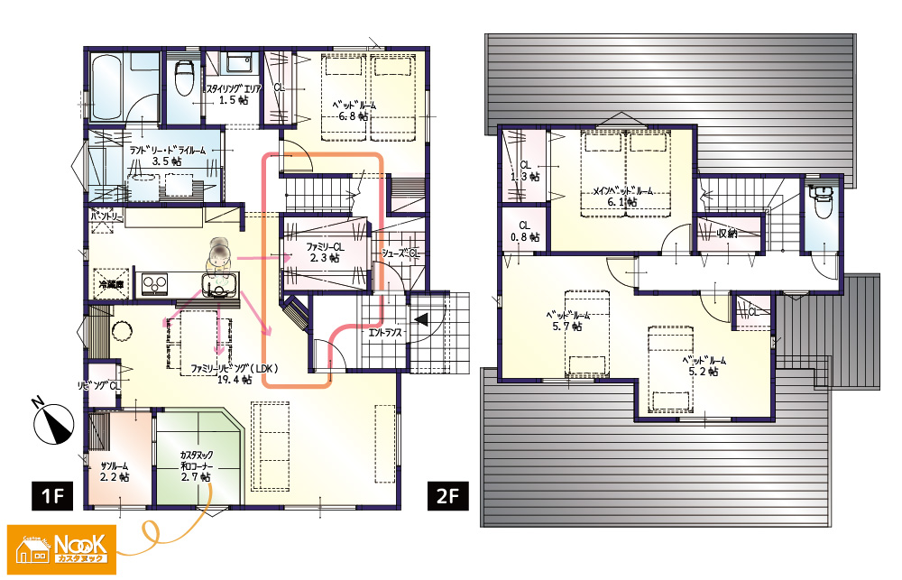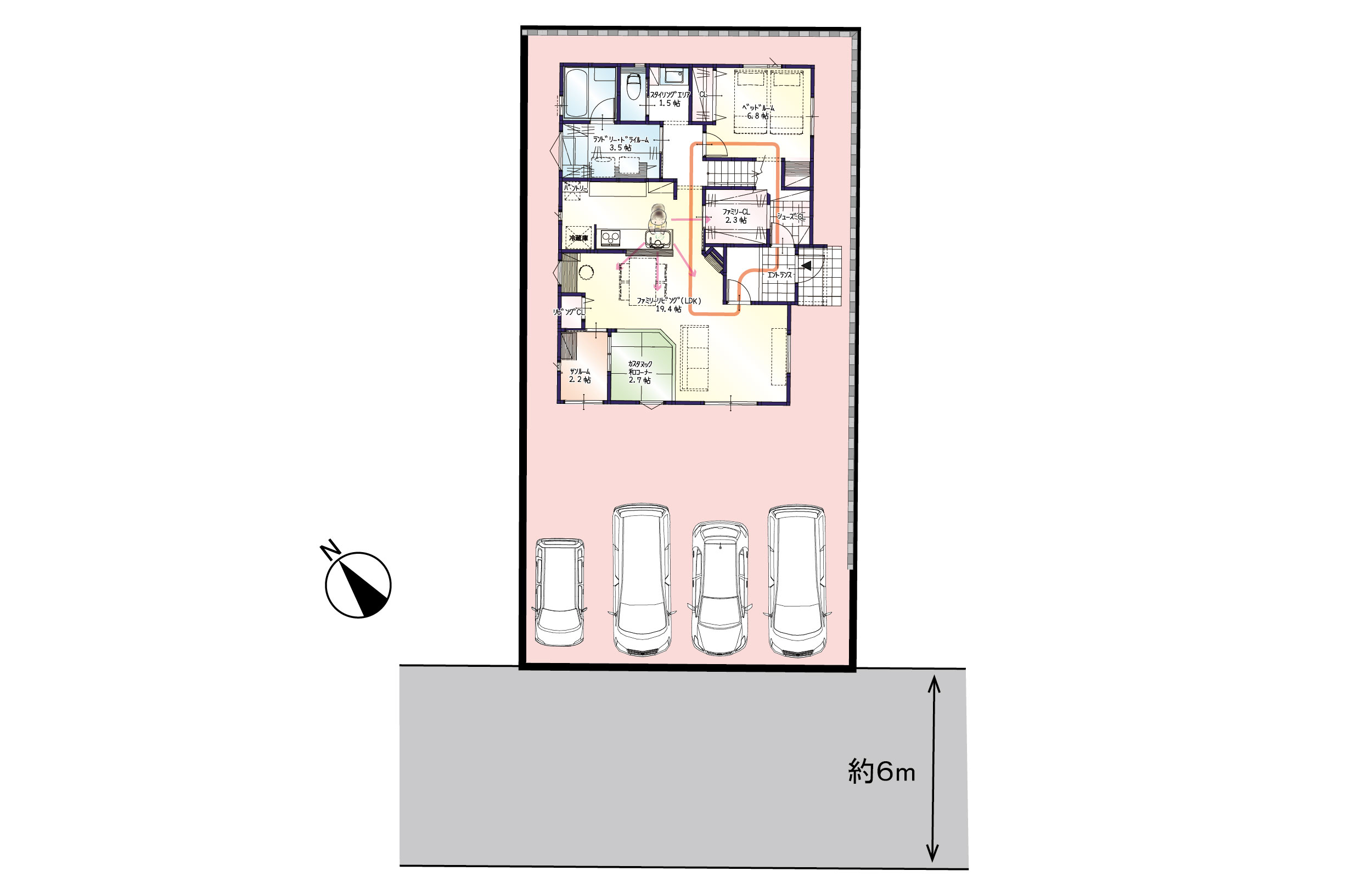 水まわりが効率的に配置された家事ラク動線があり家族の生活スタイルに合わせた使い勝手のいい住まい。