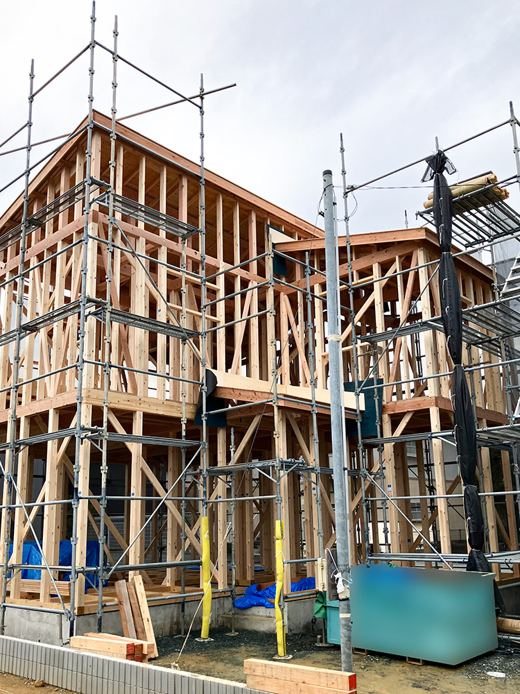 家が傾くと、日常生活に影響を与えたり、耐震性能が著しく損なわれるため、それを未然に防ぐために地盤調査を実施しています。地盤がどの程度の建物の重さに耐え、沈下に抵抗する力をもっているかを調査します。