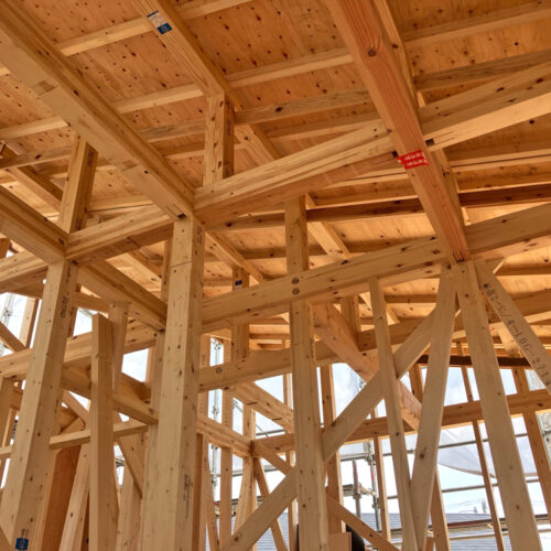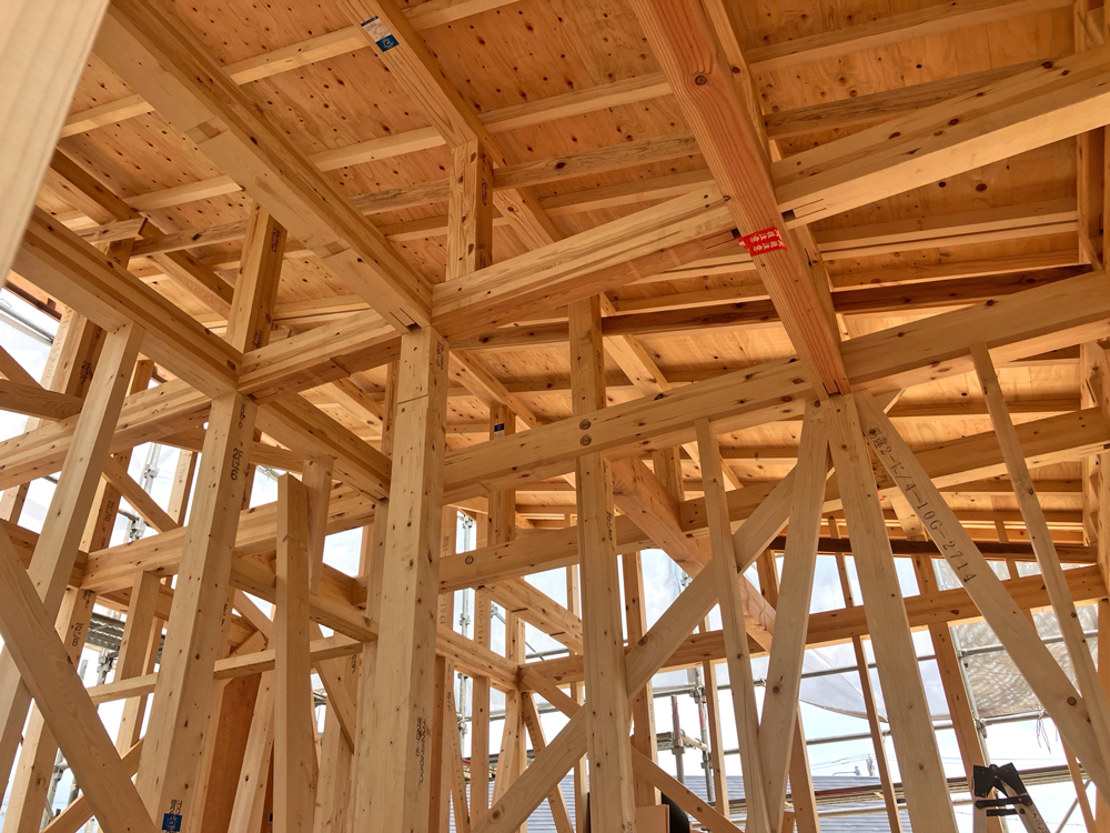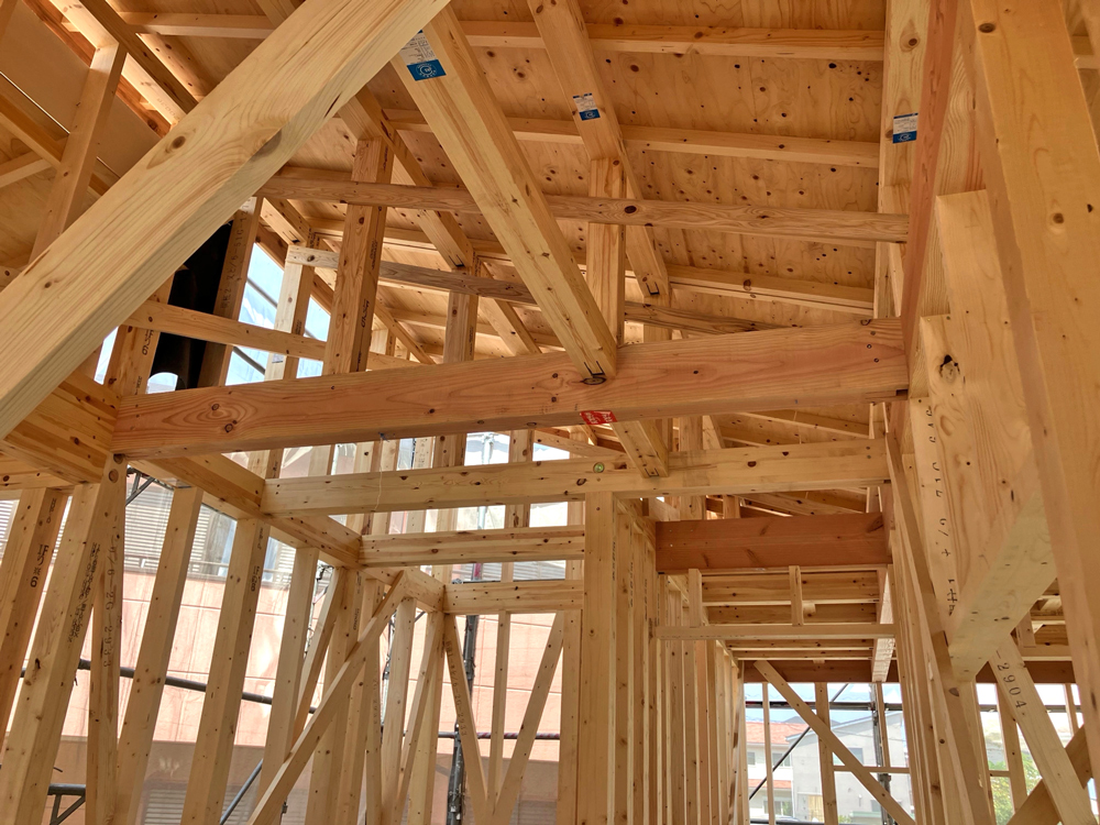 剛床構造は、床に剛性を持たせることで耐震性を高める構造です。地震による床の歪みを最小限に抑え、建物全体の歪みを均等に分散し、建物の倒壊を防ぎます。一般の在来工法に比べて約3倍の剛性があります。
