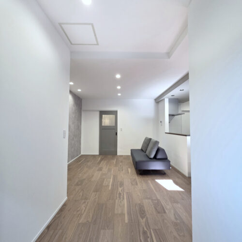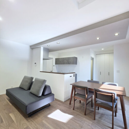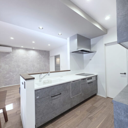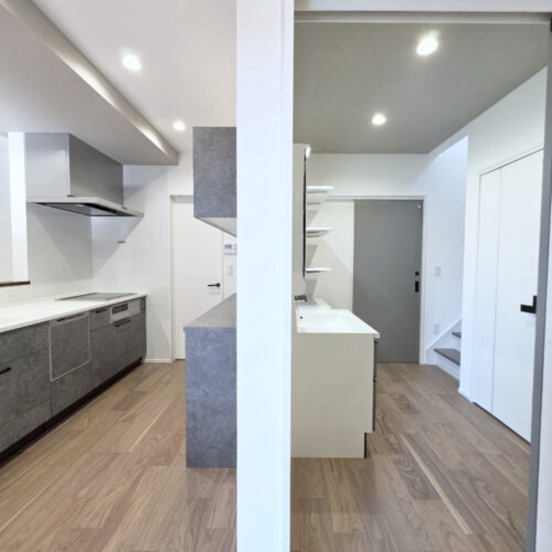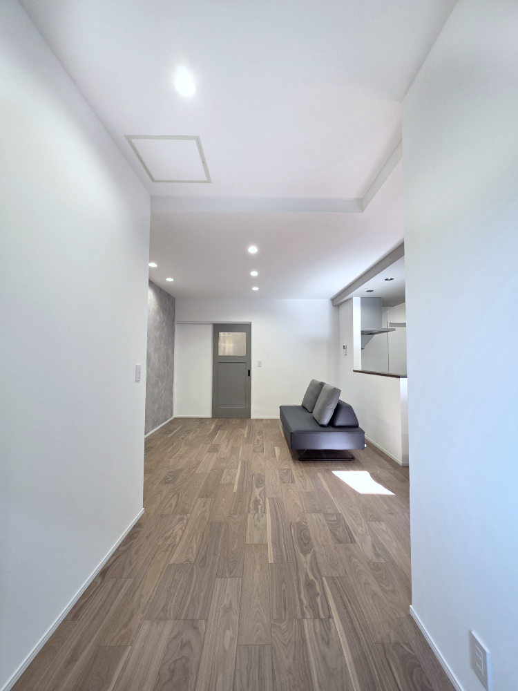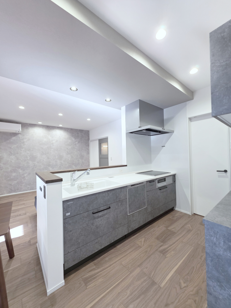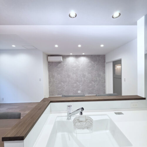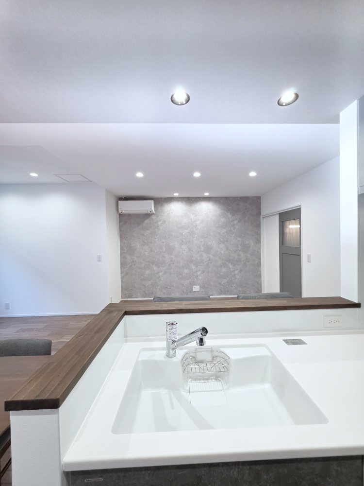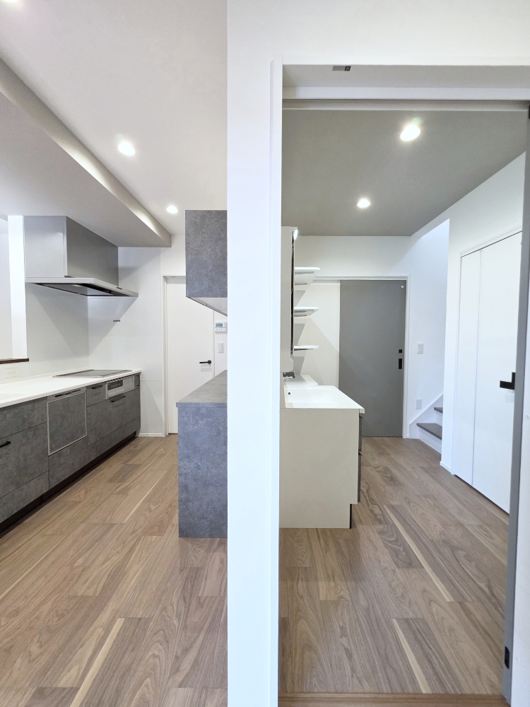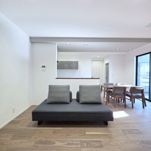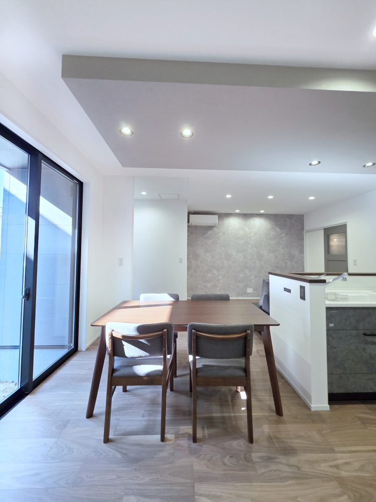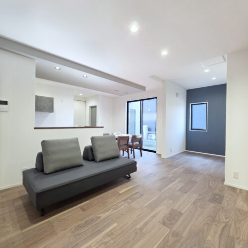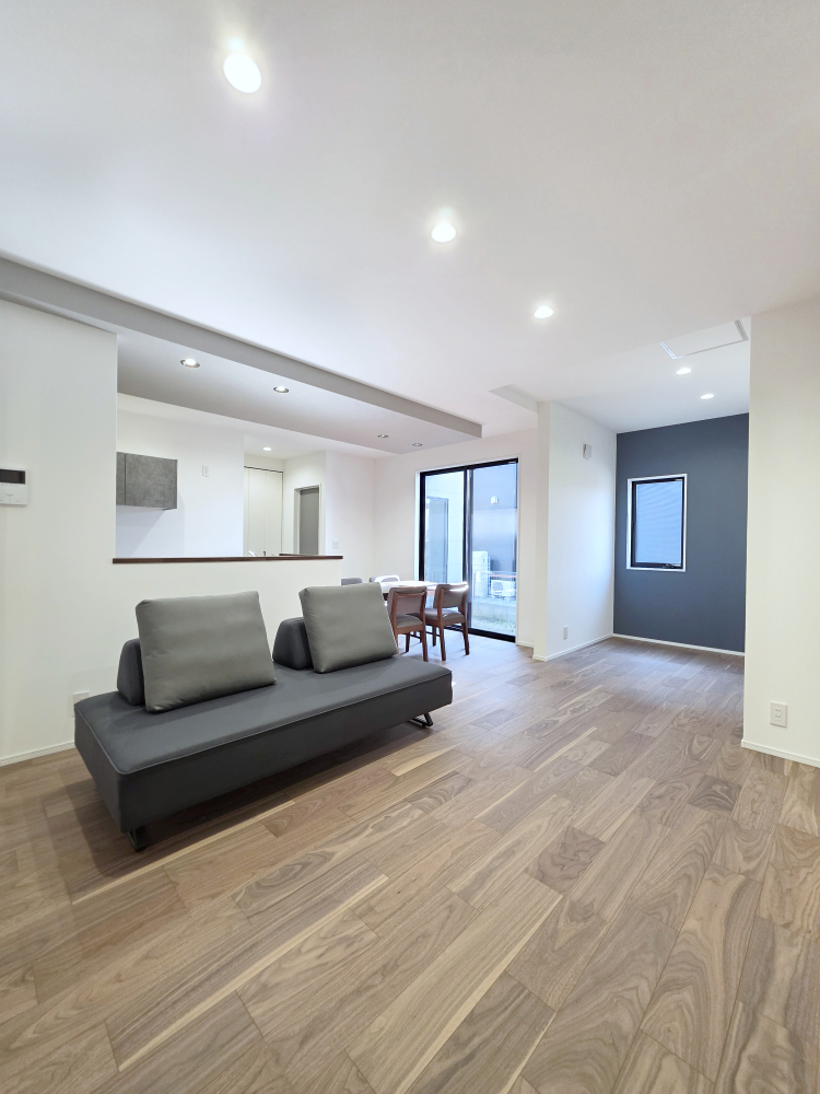 くつろぎ空間LDK (19.6帖): 約20帖という広々としたLDKは、家族が集まる中心となる空間です。リビング側はくつろげるように掃き出し窓がない仕様にしました。