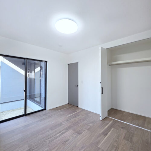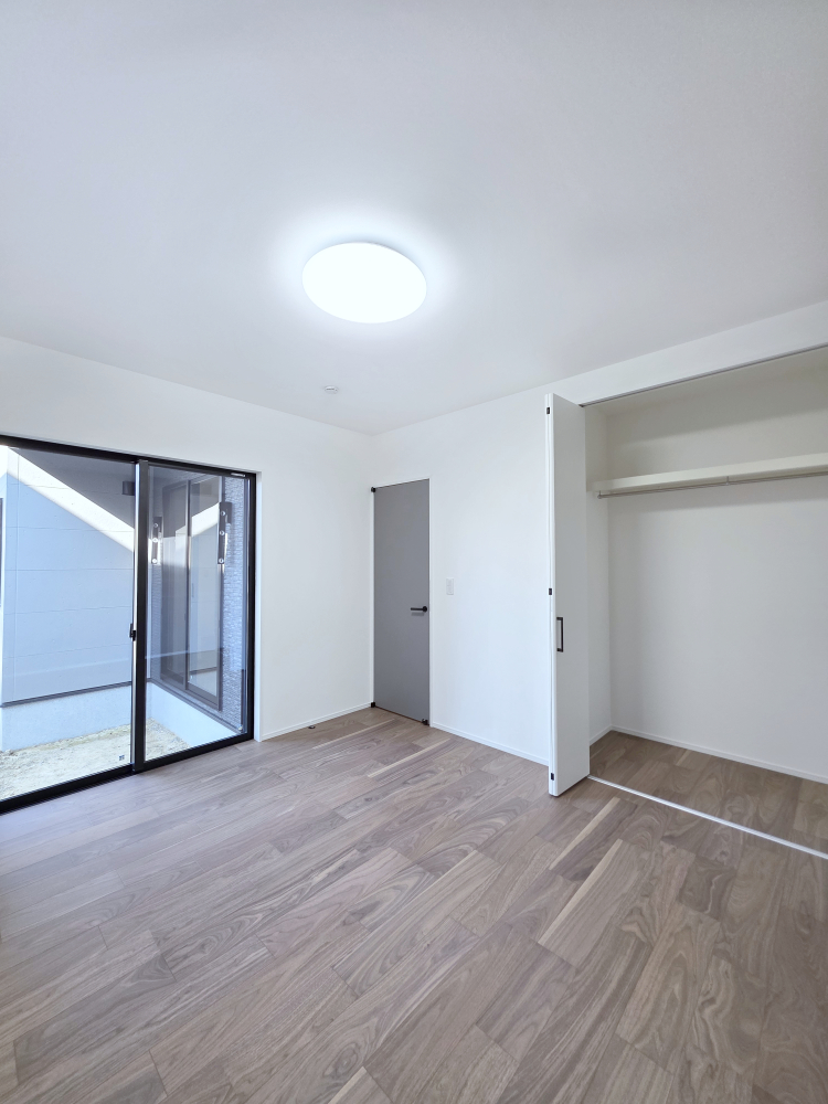 1階のメインベッドルーム:生活の中心が1階で完結できる! 起床から就寝まで、日常の主要な活動(食事、リビングでのくつろぎ、入浴、そして就寝)をすべて1階で行うことができます。
