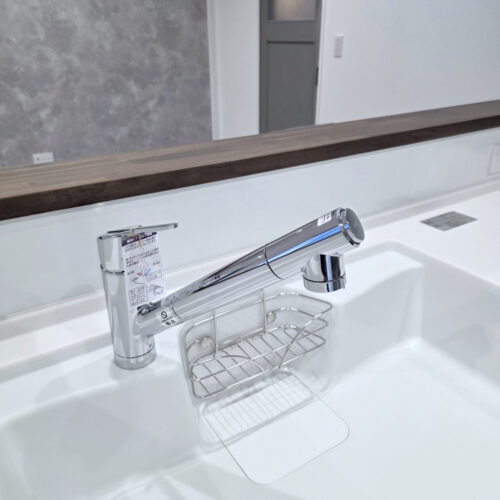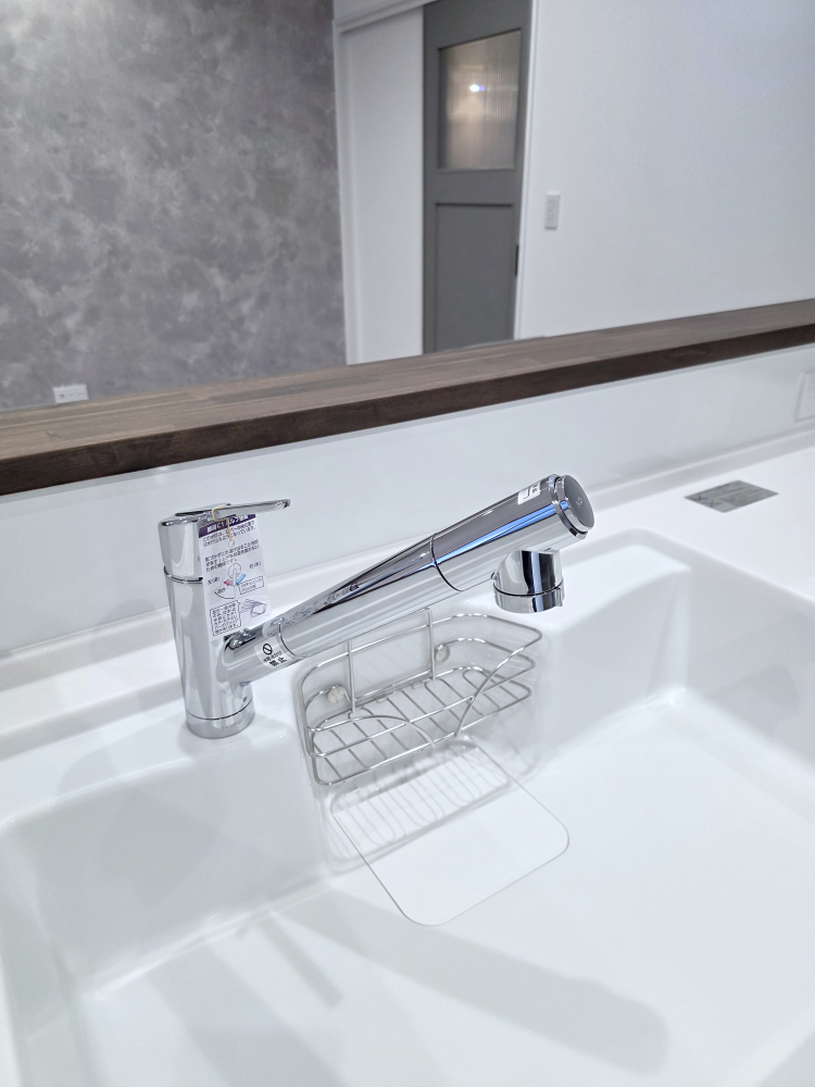 エリシオは、天然石のような美しい質感が特徴。広いカウンターにたっぷりの収納スペースがあり、水栓もスタイリッシュで使い勝手も良い。汚れがつきにくくお手入れも簡単です。