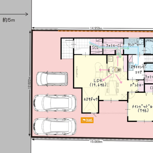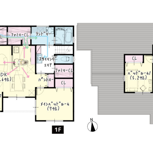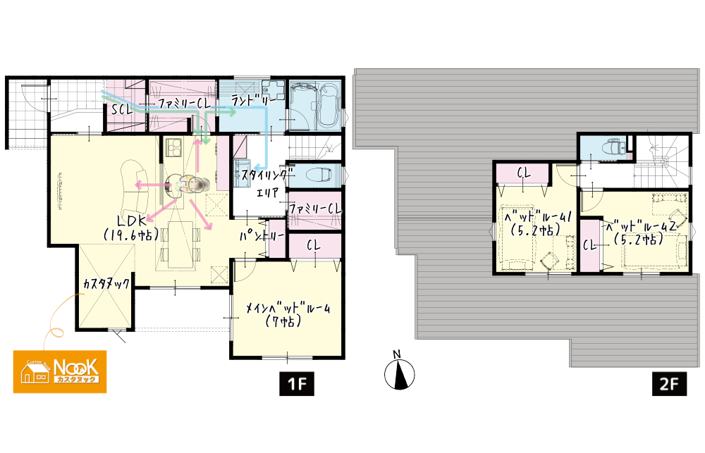 豊富な収納: ファミリーCLが2ヵ所あり、階段の昇り降りが無い収納動線が家事効率が格段に上げてくれます。