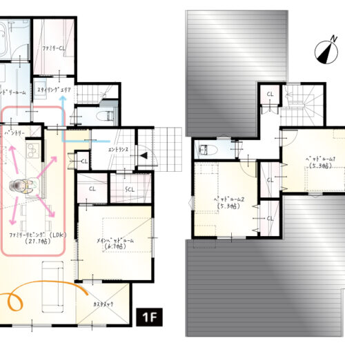 6.1帖の寝室を1階に配置!老後を見据えた平屋風の間取り