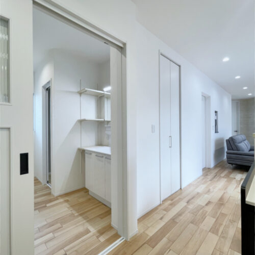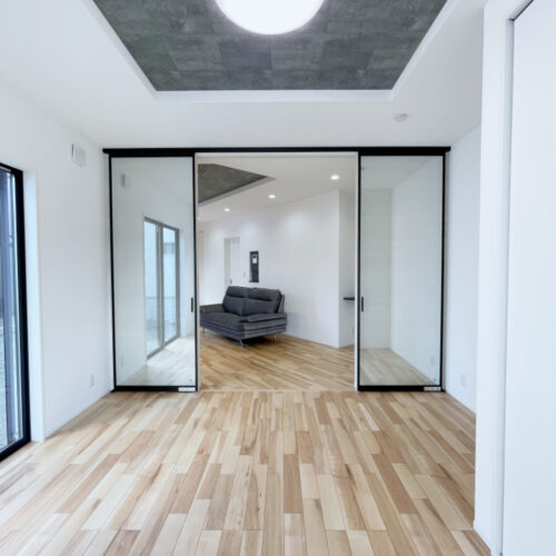 敷地を活かした1階2部屋の平屋風の家。ファミットドアの個室で自由な住み方。