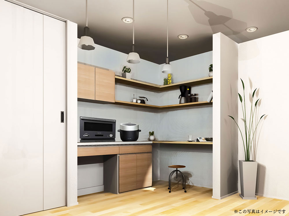ホッと一息つくスペースとしてはもちろん、こだわりの調理家電をやスパイスを並べたりもできます。