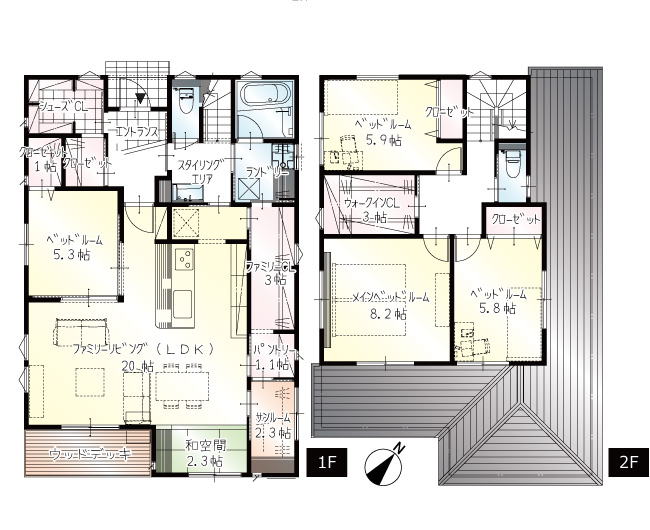 浜松市中区富塚町着工新築住宅駐車3台サンルームウッドデッキウォークスルー和空間
