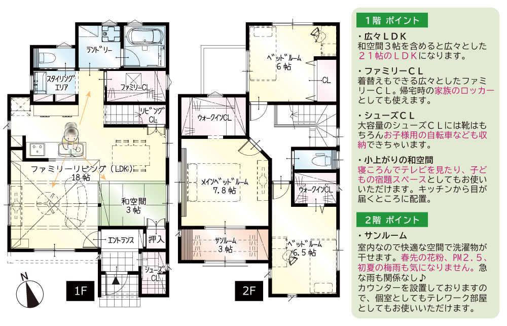 • ・LDK、和空間のどこにいても家族を近く感じられる間取り