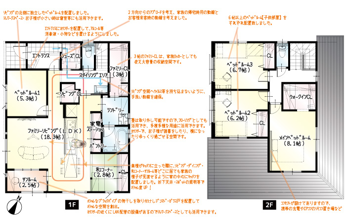 • ・キッチンに立った際にリビング・ダイニング・和コーナー等どこにいても家族の様子が分かる!