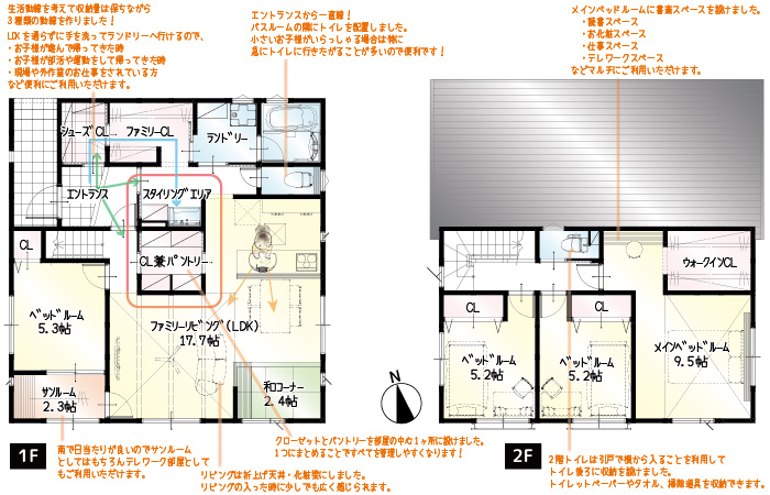 • ・1階に5.3帖のベッドルーム