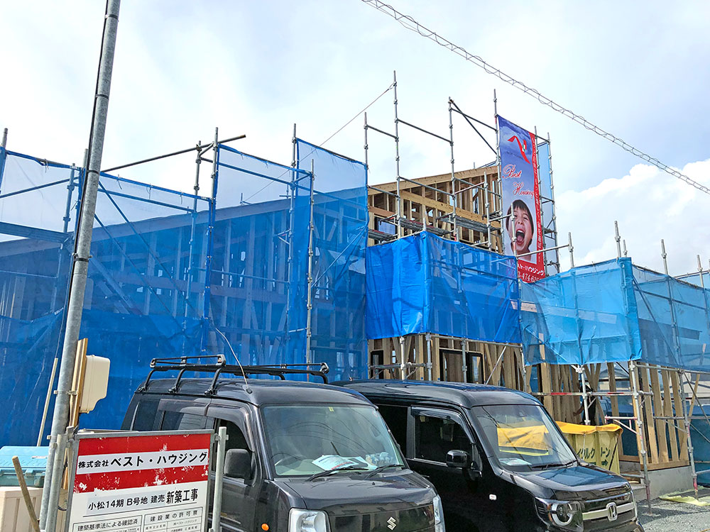 先日、ベスト・ハウジング建売住宅 浜松市浜名区「小松14期B号地」が1棟無事上棟しました。