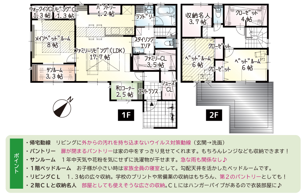 標準搭載 地盤保証+液状化保証! 耐震等級3 繰り返しの地震から家を守るミライエ搭載 防犯ガラス採用 リビングエアコン・全室LED照明・家具付き 朝日ウッドテックの抗ウイルスフローリング採用