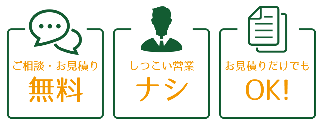 まずは見積もりだけしたいというご相談もOK!お客様が十分納得した上で施工をさせていただきます。お見積りをご覧になりお客様のご希望に沿えていないと感じた場合は、お気兼ねなくお断りくださいませ。