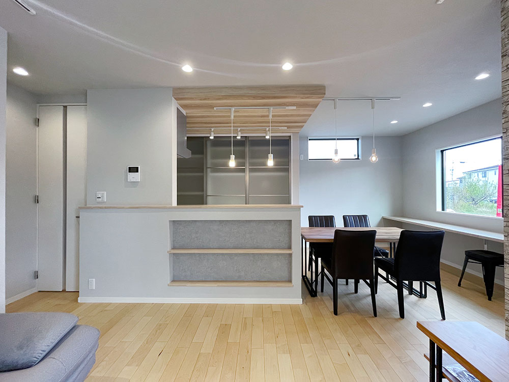 キッチンをエントランス横に配置した毎日の家事がラクになる住まい。