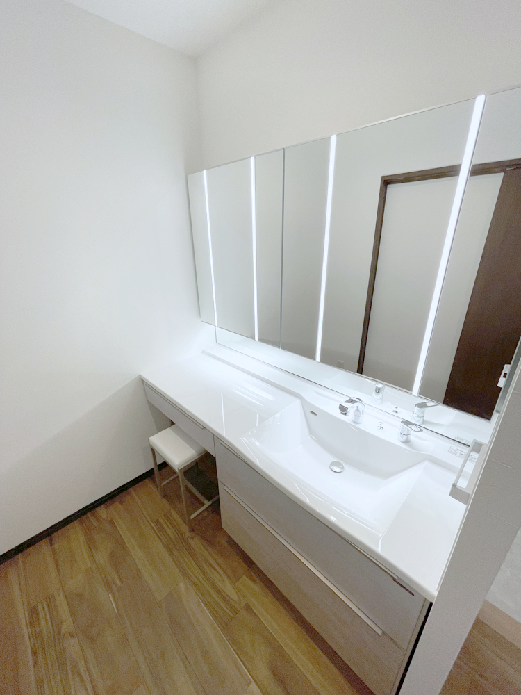 木目クロス・カスタヌック・ゾーニング・165㎝洗面化粧台・ホビールーム・小上がり寝室空間。