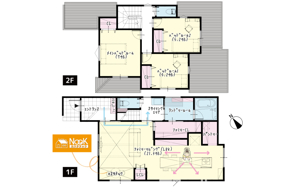 - 2階には5.2帖のベッドルームを2部屋ご用意
