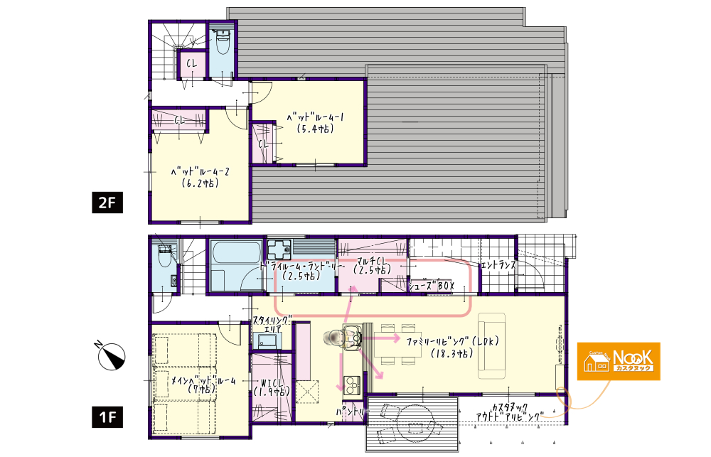 来客動線と家族動線を分けることでプライベート空間を確保しました。
