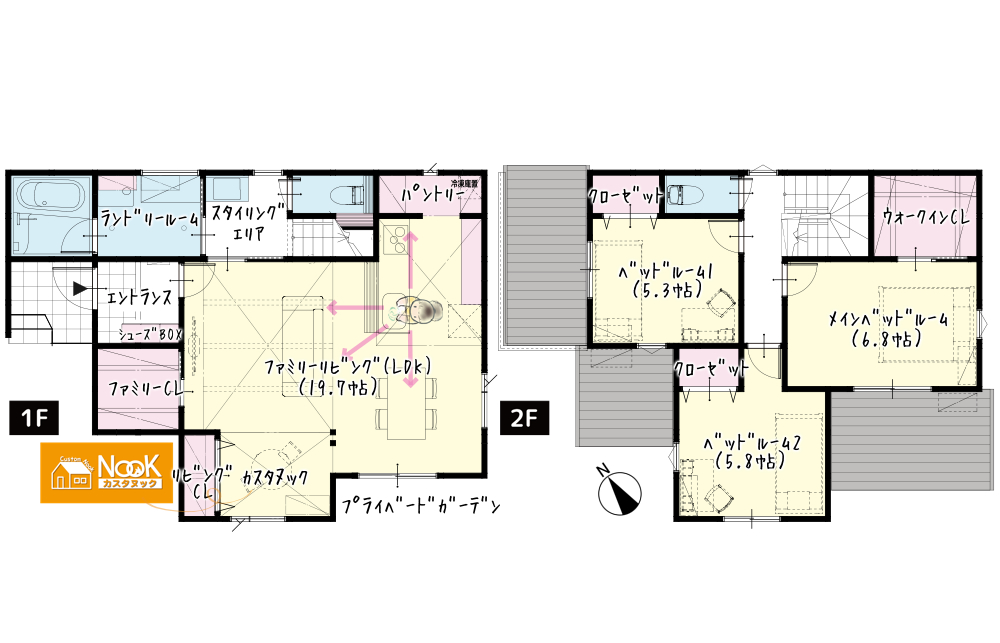 6.8帖のメインベッドルームの中に、2.5帖のウォークインCLを配置しました。季節外の衣類や家電の収納にも役立ちます!