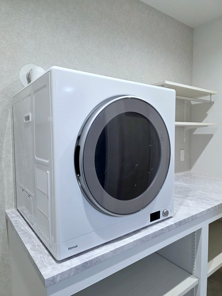 After: ホワイトの造作カウンターに、憧れの「乾太くん」がジャストフィット!