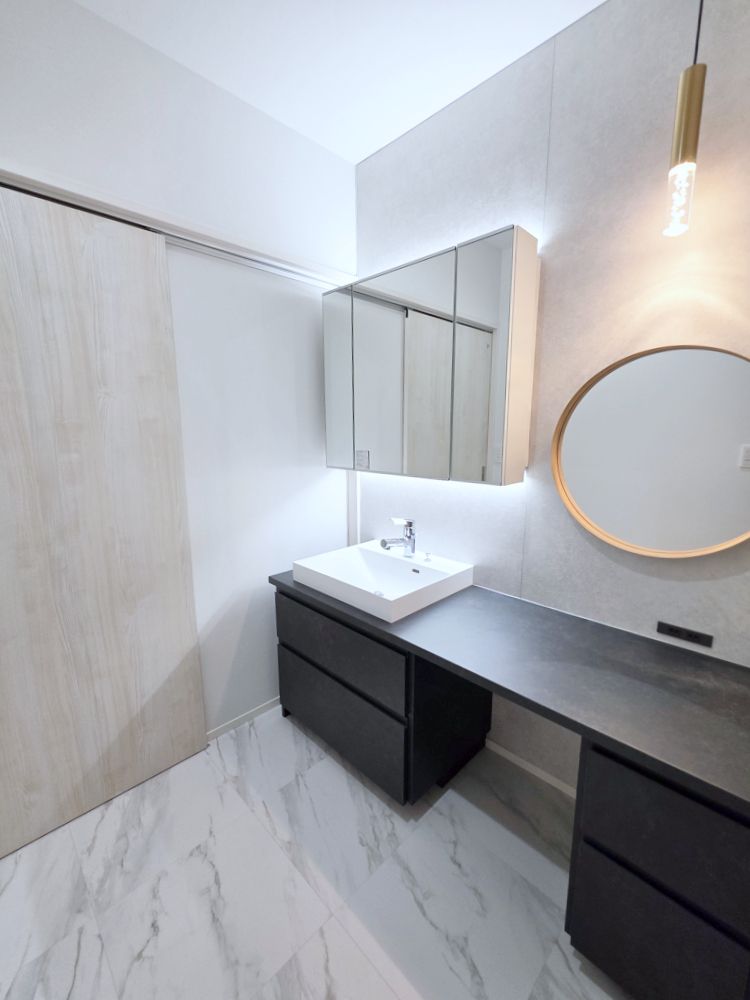 鏡に映る自分まで少し特別に見えるような、そんな魔法の空間の全貌は、メインの施工事例記事でたっぷりご紹介しています。