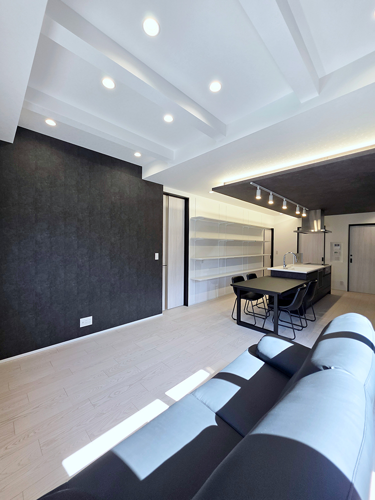 黒の壁や天井に間接照明を仕込むことで、重厚感が際立ち、空間がワンランク上の雰囲気にぐっとアップ♪柔らかな光が壁面を伝うことで生まれる奥行きは、ブラックインテリア特有の圧迫感を打ち消し、空間を一気に垢抜けた表情へ。 計算された光と影のコントラストが、日常の住まいを理想の「ホテルライク」な空間へと昇華させてくれます。