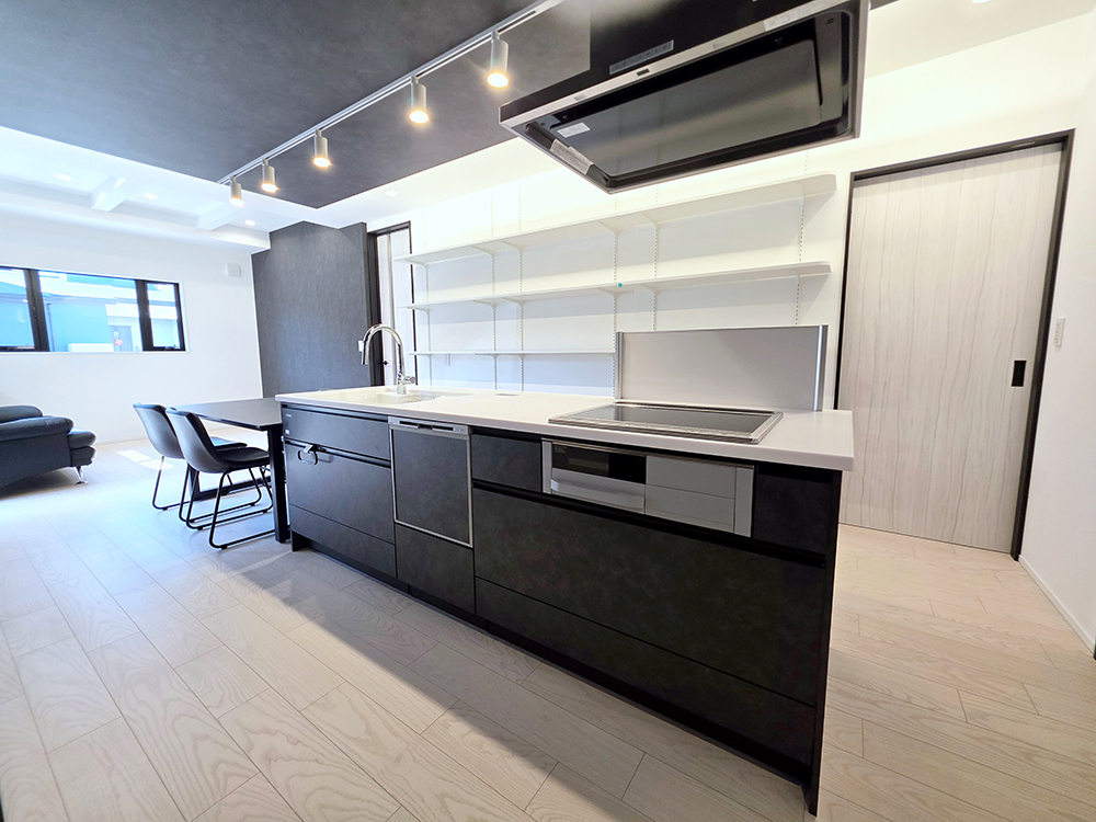 標準仕様のシステムキッチンは、カラーを「黒」に統一することで、生活感をスッと消し去りLDKの主役となる存在に格上げしてくれます。キッチンは、毎日使い、長い時間を過ごす場所。 だからこそ、機能性だけでなく「オシャレ」に徹底してこだわることで、慌ただしい家事も、心を豊かに彩る特別な時間へと変わります。