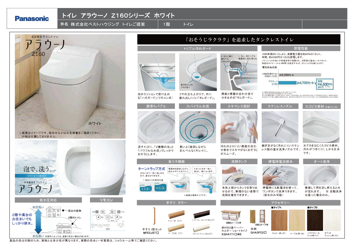Panasonic(パナソニック) アラウーノZ160のトイレをお使いで困っていることがありましたら以下をご参照ください。画像をクリックしていただくと詳細がご覧いただけます。 Panasonic アラウーノZ160お手入れ方法・使い方 PanasonicアラウーノZ160 設備情報 panasonicパナソニックトイレアラウーノZ160お手入れ方法設備情報