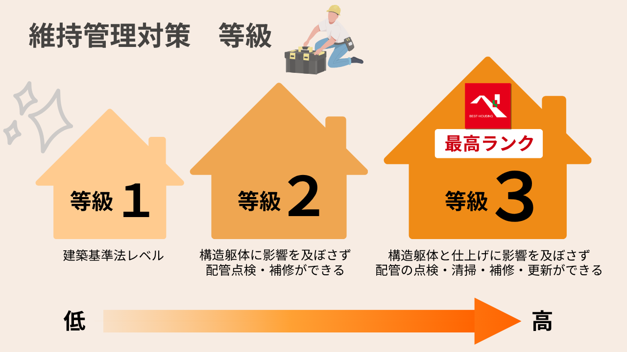 等級が高いほど、メンテナンス時の負担やコストが抑えられる設計になっています。