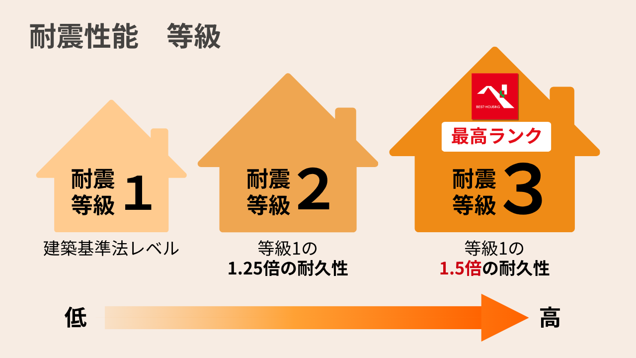 等級は1〜3の3段階で評価され、数字が大きくなるほど耐震性が高くなります。