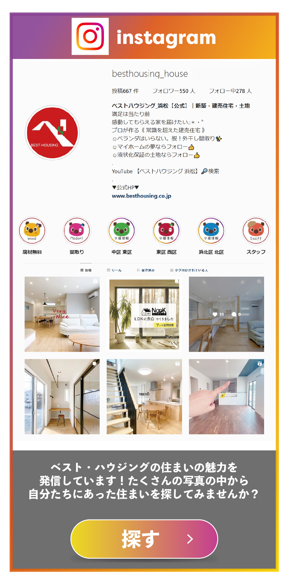 ベスト・ハウジングの住まいの魅力やコラムを発信しているのは、instagram・Facebook