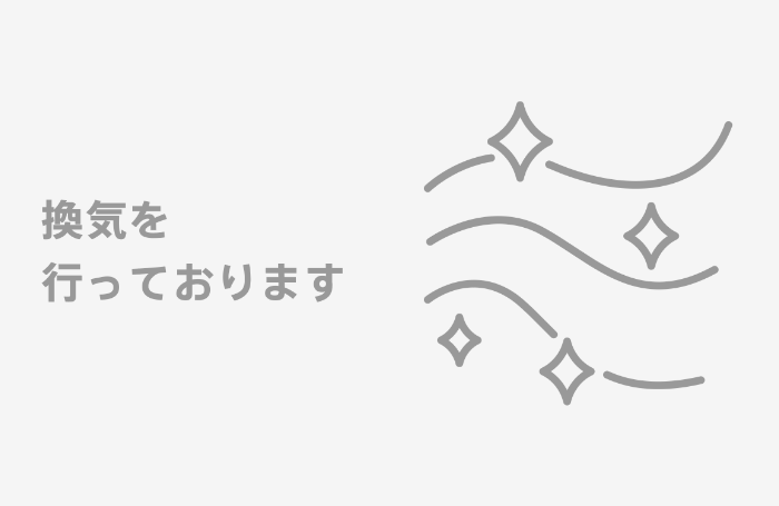 定期的にアルコール消毒と換気を行っております。お客様が安心してご来店いただけるよう、清潔な環境づくりに努めています。