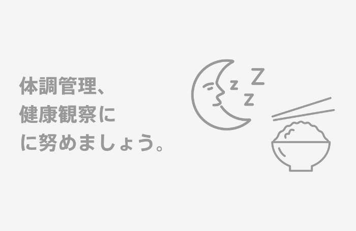 従前の体調確認・検温を励行しております。体温が高い場合、体調が優れない場合は出社しないように徹底しております。