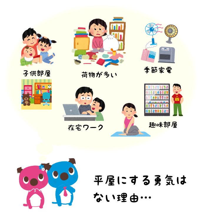 ・今は使わないけどすぐには捨てられないものが多く、居住スペースが汚くなってしまう。