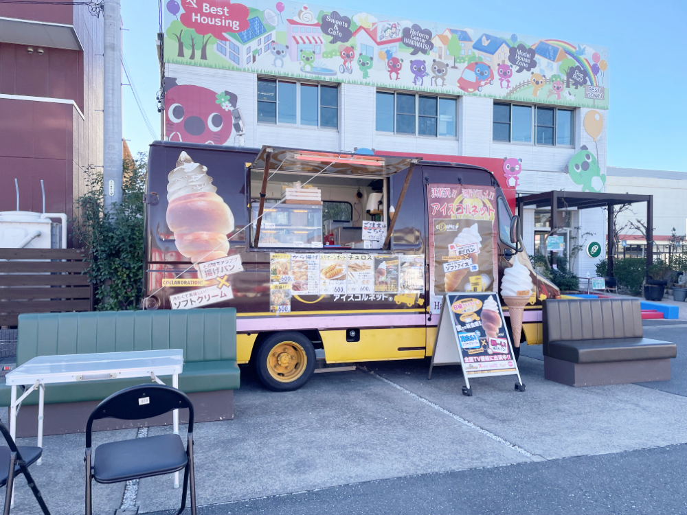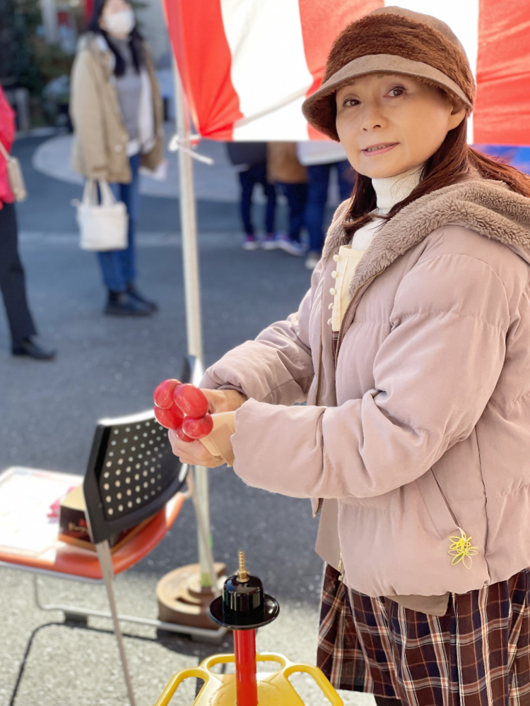 真冬の屋外でアイスコルネット⁉と思いましたが、天候に恵まれ完売していました。ぐるぐるハリケーンポテトが映えていました!
