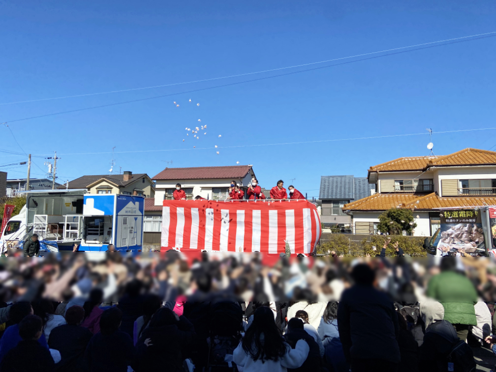 上棟式など、特別な日に多く見られる日本の伝統行事の餅まき。