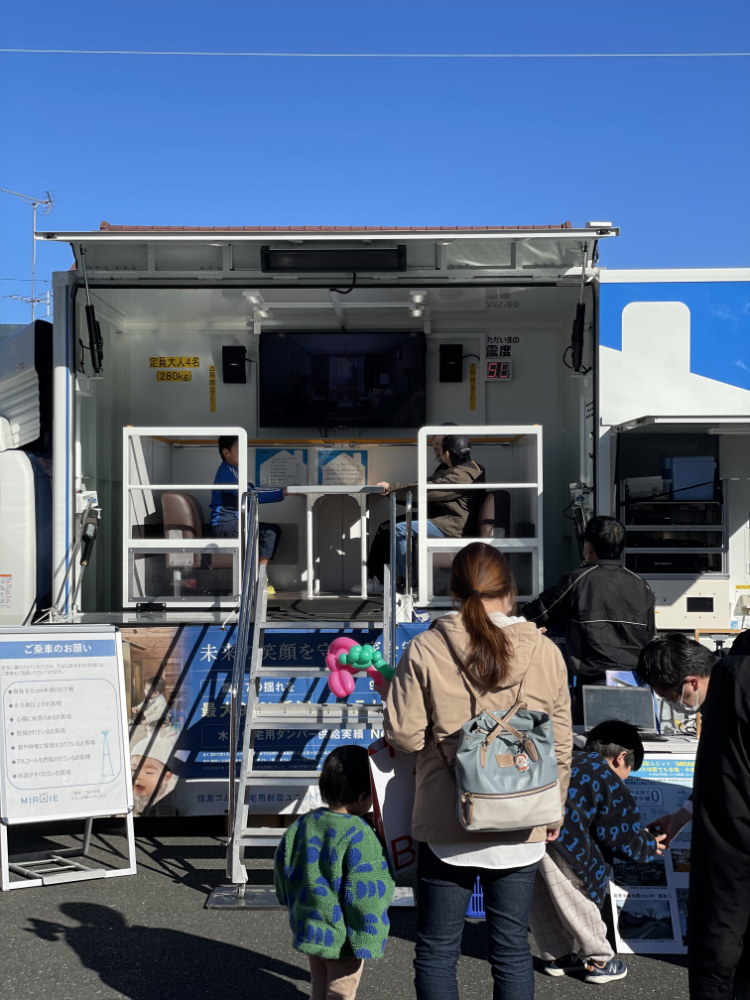 昨年の能登半島地震など、記憶にある実際の事例と合わせた震度の体感ができる起震車。いつ来るかわからない大地震に備える機会になりました。