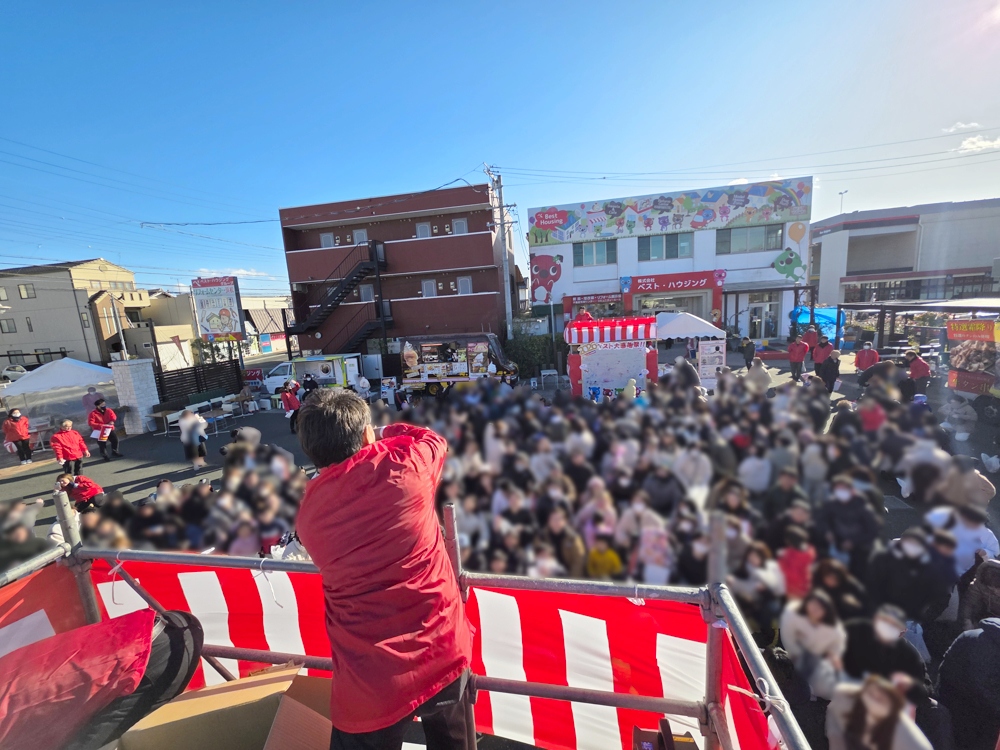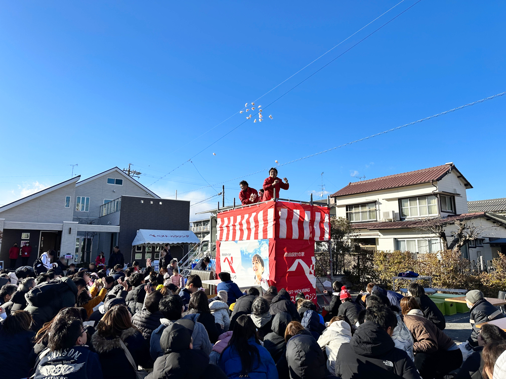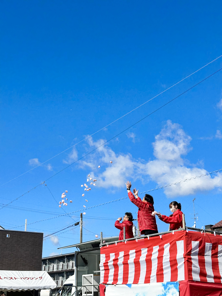 あちこちで上がる歓声。拾い上げたお菓子を誇らしげに見せてくれるお子様たちの笑顔に、私たちスタッフも寒さを忘れて夢中で撒き続けました。 「福」を皆さまと分け合うこの伝統的な時間は、ベストハウジングが大切にしている「地域の皆さまとの絆」を改めて実感させてくれる特別なひとときとなりました。