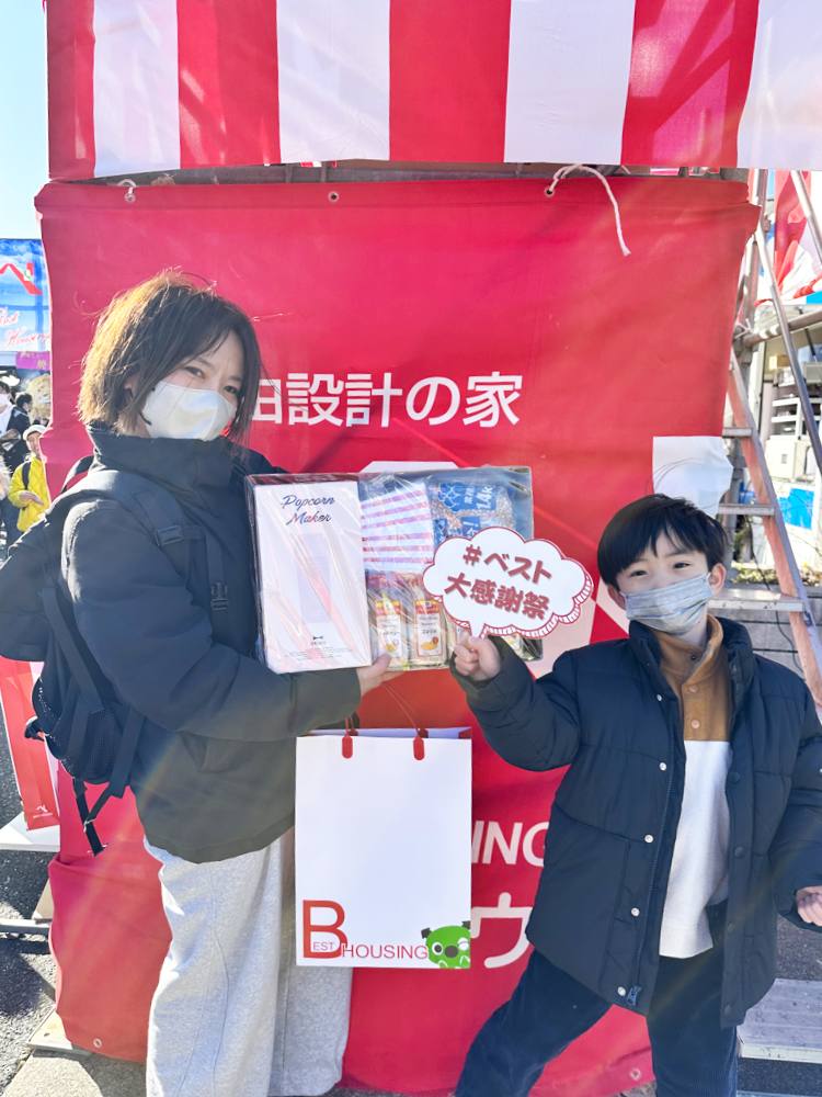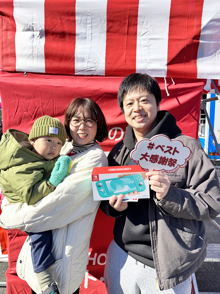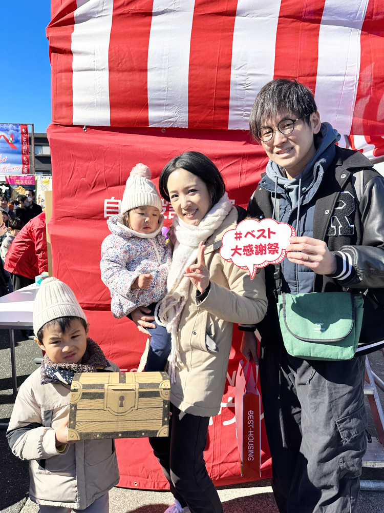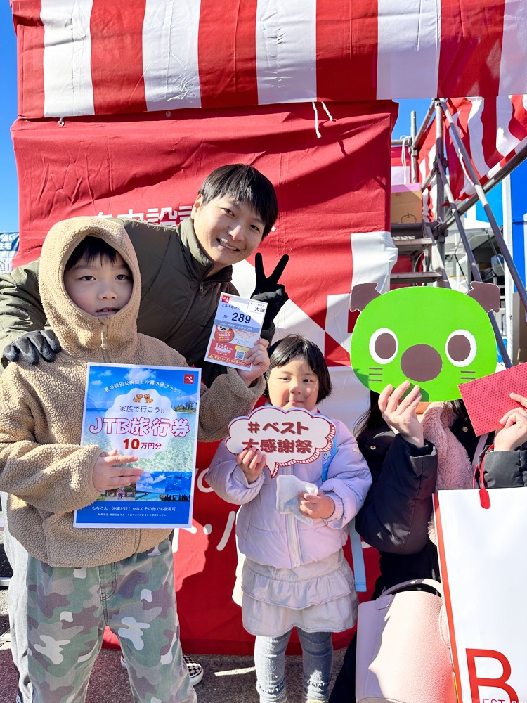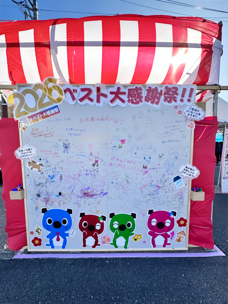ベスト大感謝祭オーナー様抽選会年賀状イベント家族の思い出キッチンカー乾太くん起震車餅まき