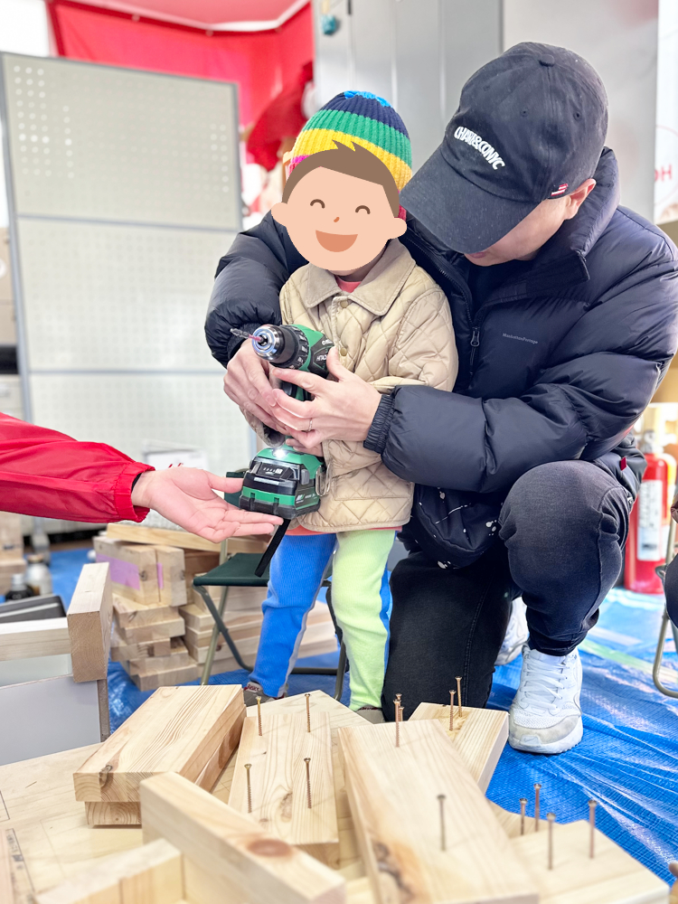 真剣な眼差しで釘を見つめるお子様たちの姿は、まるで小さな職人さんのよう。 最初は慣れない手つきだった子も、監督のアドバイスを聞きながら、最後には立派な作品を完成させてくれました。