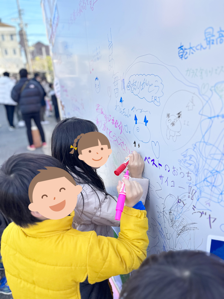 また「中体連絶対勝つ!」「福井さん推し!」など抱負や想いの数々を書いていただいてました!!お子様方のたくさんの絵にも、元気をいただきました。このボードは、私たちの宝物です。