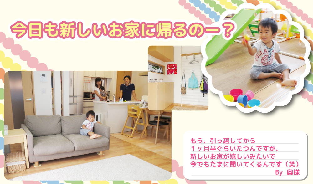 また子供たちが、近くに住んでおられるお子さんたちと、年齢が近いようなので、友達がいっぱいできればいいなと思っています。