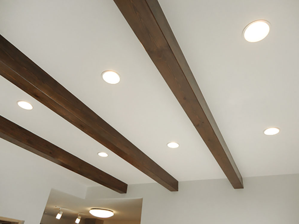 梁を見せるデザインだったので、どうしてもダウンライトが良くて…。予算的にNGだったのですが、そこは奥さんに納得してもらいました。