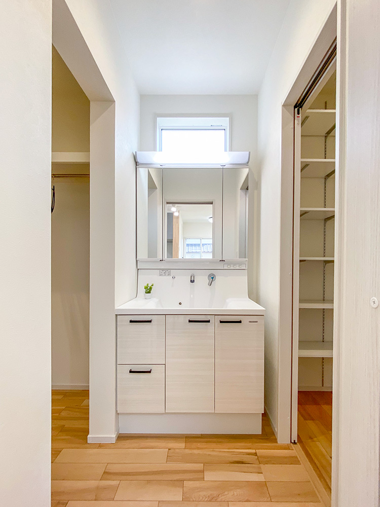A. 洗面台、クローゼット、脱衣所、リビングの動線がひと繋がりになっていて、小さい子どもがいる私たちにとって、すぐに行き来ができて子育てに適している日々感じております。