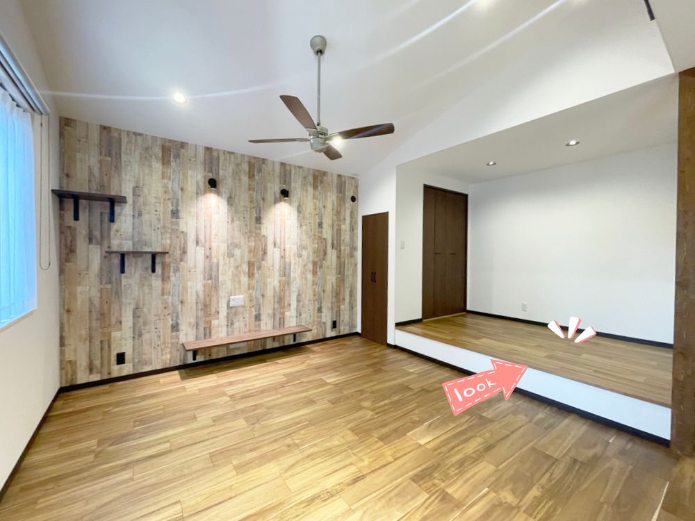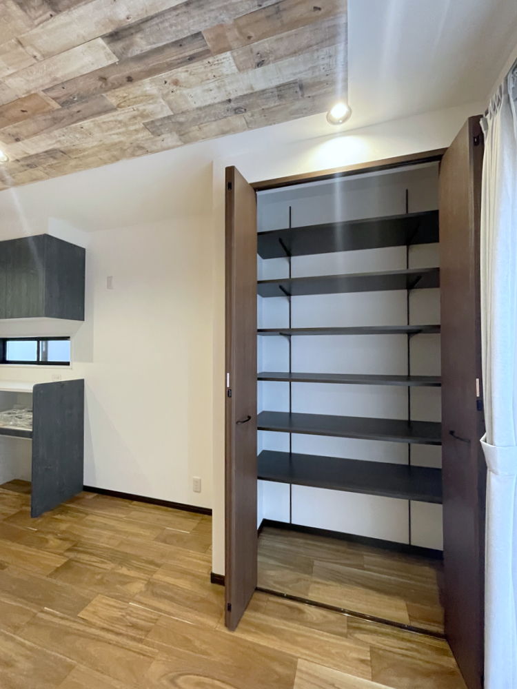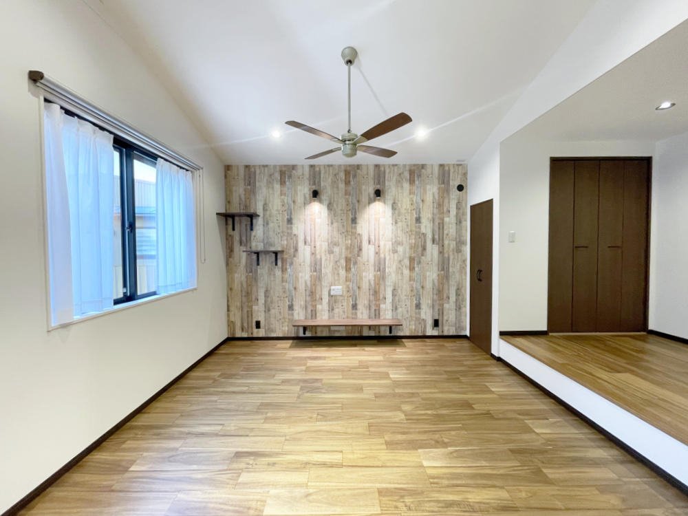 注文住宅ブルックリンヴィンテージ木目ドレッサーカスタヌック木目クロス乾太くんエリ―ナアクセントクロスホビールーム小上がり寝室浜松市中央区S様邸分譲住宅注文住宅新築一戸建てお客様の声