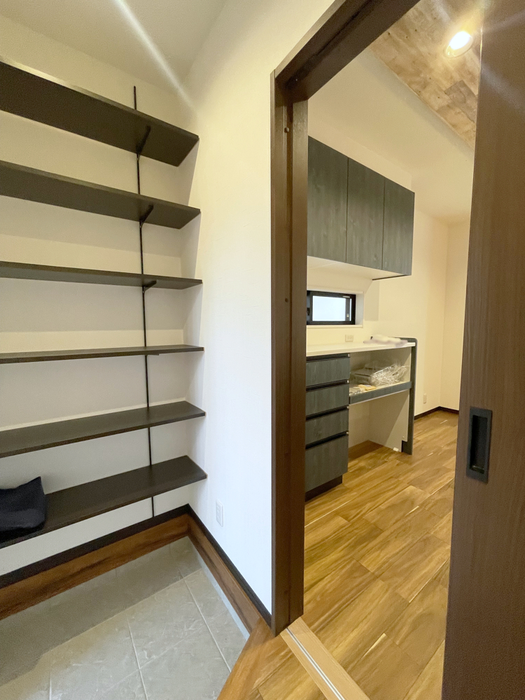 買い物は週に1度まとめ買いをすることが多く、玄関とキッチンは近くしました。エントランスからのアクセスも良く、購入した食材の運び入れやゴミ袋の出し入れなどに配慮した間取りです。
