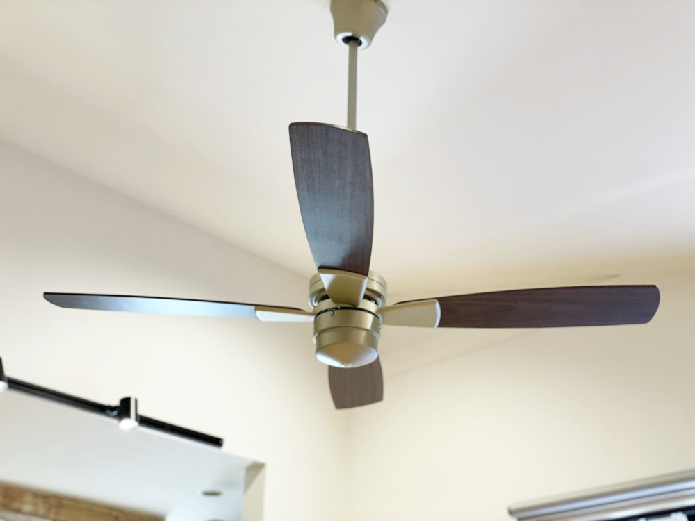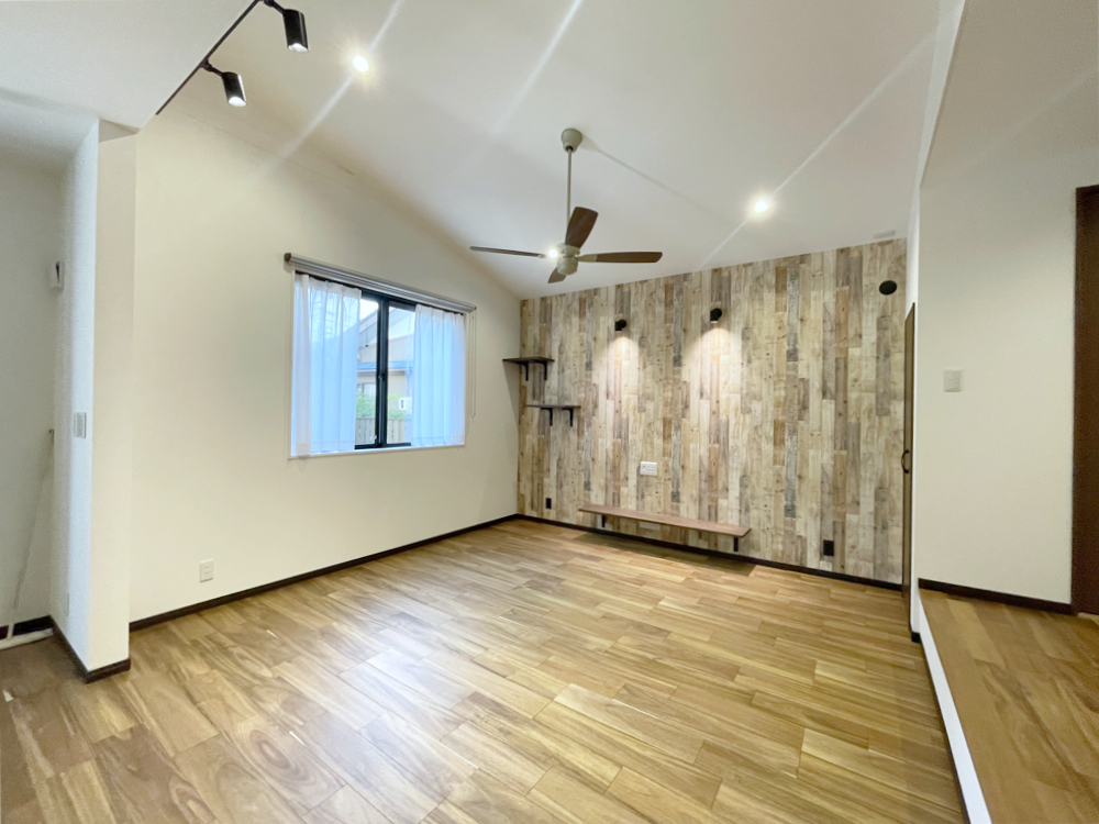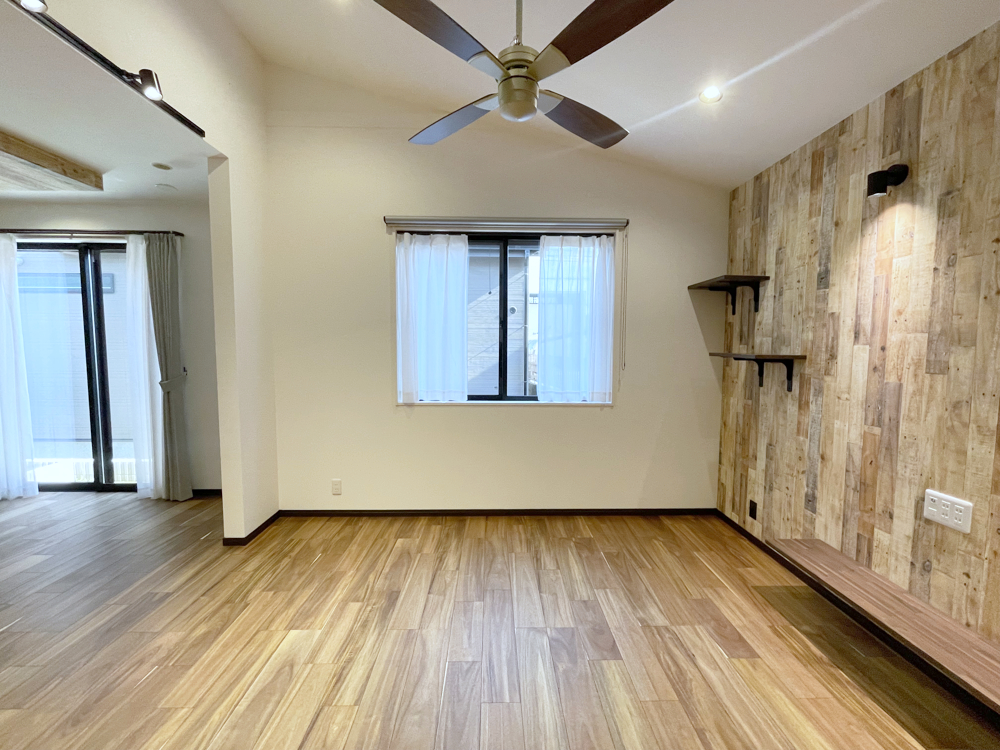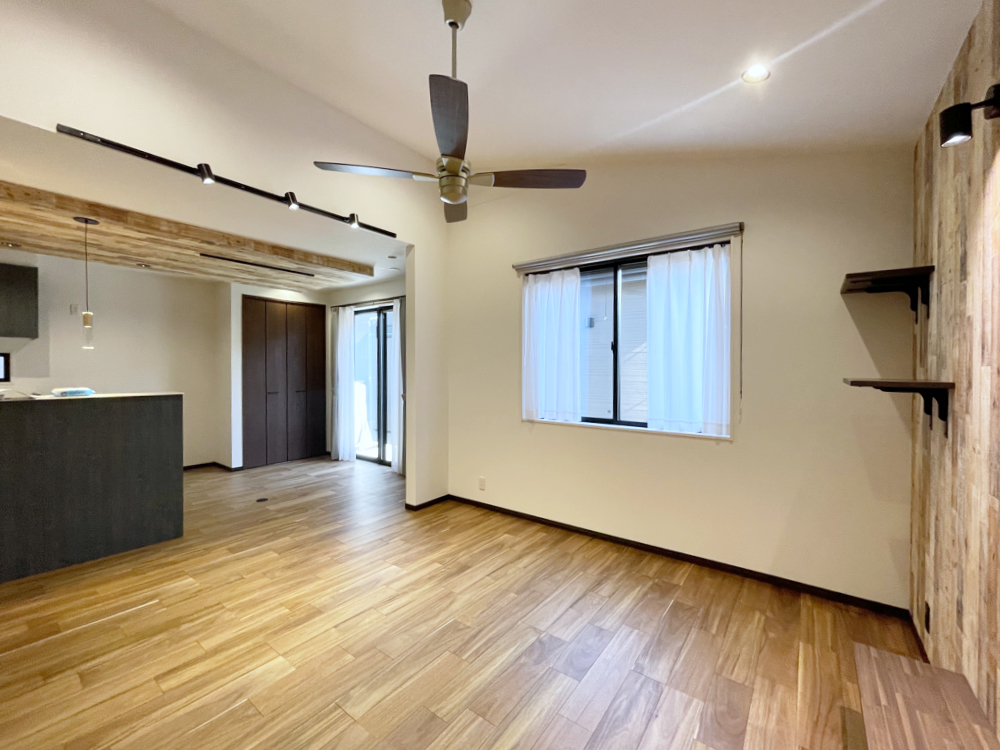 また、空間の個性を際立たせるシーリングファンや勾配天井など注文住宅ならではの装いです。