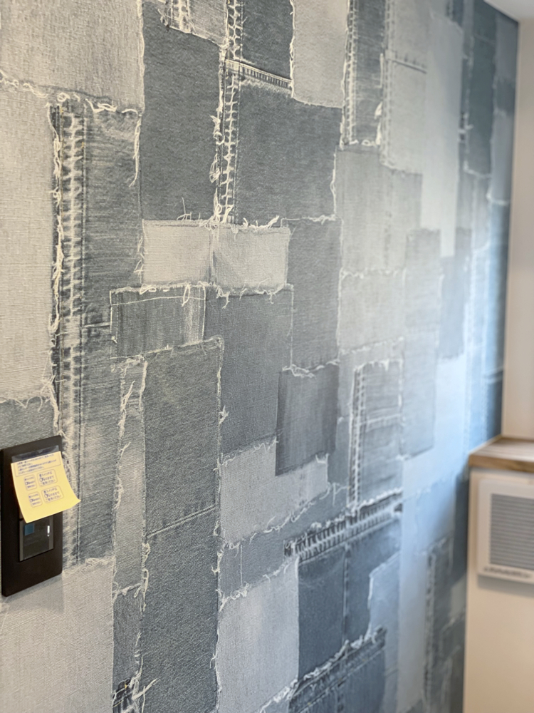 ウォッシャブルなデニムの記事を重ねたモダンカジュアルクロスは、ランドリーと色違いを採用しています。