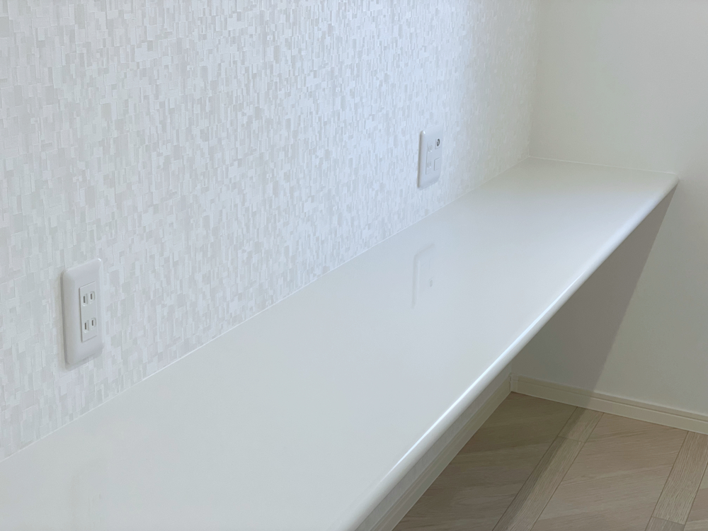 備え付けのカウンターとコンセントで機能性のある空間に!