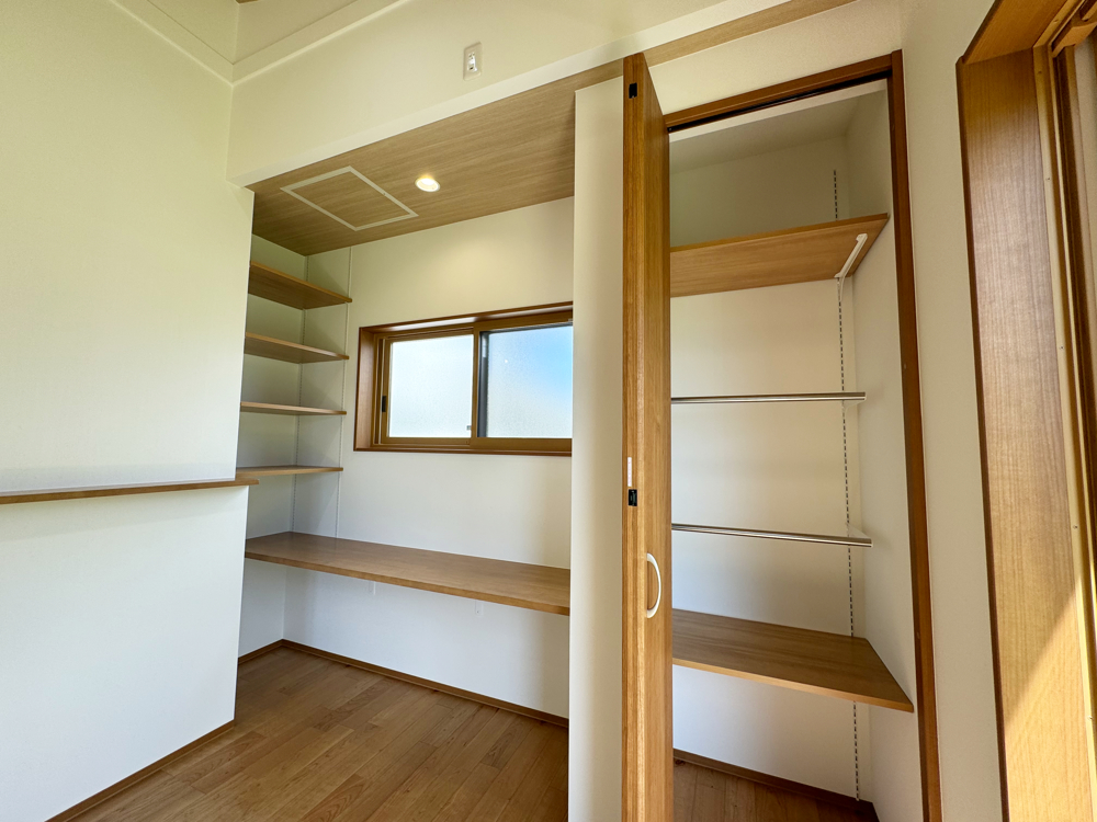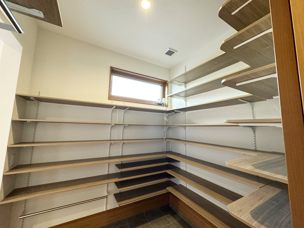 ウォークスルーのシューズクローゼットとファミリークローゼット。使い勝手が良い。